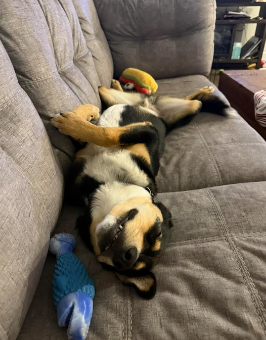 “Striker has officially been adopted now for one year, and he has brought so much happiness into our lives. While initially apprehensive about getting a dog, my fiance has become the best dog dad to Striker. It is so much fun coming home to a happy, wagging tail guy who gives us more love than we know what to do with it. He has found himself with many nicknames, including Mr. Doog, Strike Dog, Homer, and so many more. Striker loves walks, tug and fetch, zoomies, his people and sleeping in crazy positions.  We love him and it is now difficult to imagine life without him. Thank you, 4 Luv of Dog Rescue, for helping us find our Striker.”